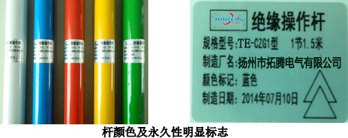 :绝缘操作杆的名称规格、制造厂名、颜色标记、制造日期、带电作业双三角形符号。