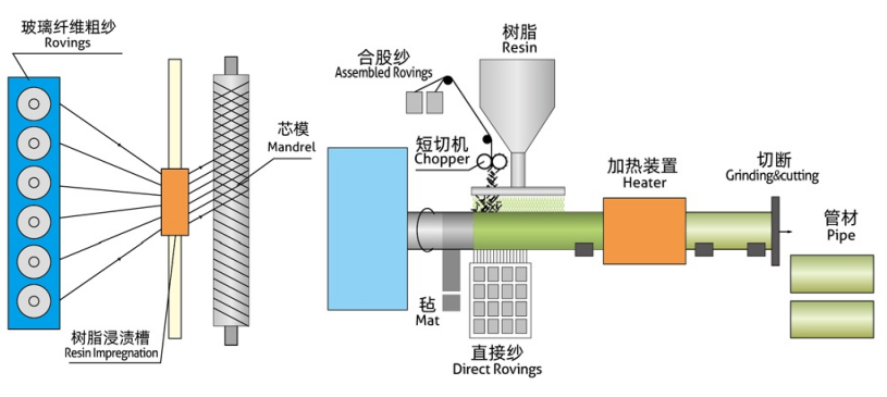 纤维缠绕成型时树脂基复合材料的主要制造工艺之一,是在控制张力和预定线型的条件下,将连续的纤维粗纱或布或带浸渍树脂胶液,连续地缠绕在相应于制品内腔尺寸的芯模或内衬上,然后在室温或加热条件下使之固化,制成一定形状制品的方法。