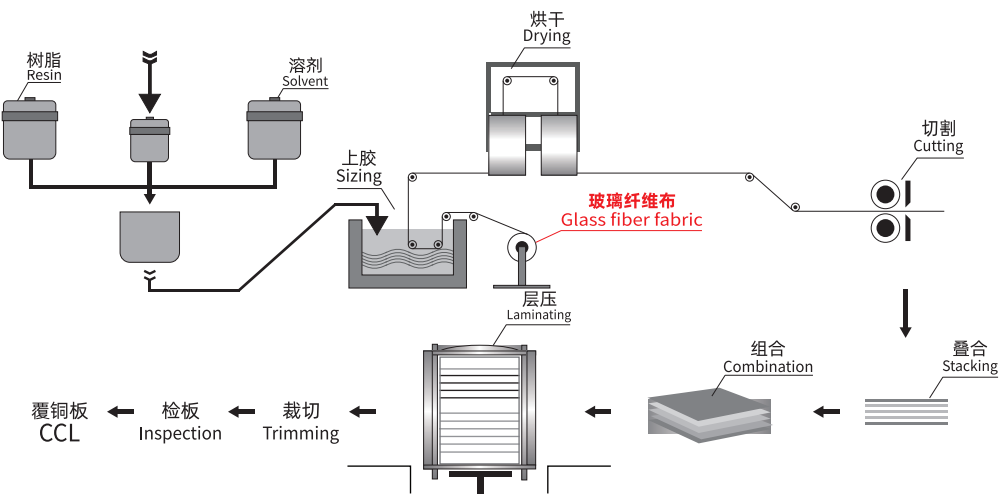 层压成型是玻璃钢成型工艺中发展较早、也较为成熟的一种成型方法,采用玻璃纤维增强材料经浸胶机浸渍树脂,烘干后制成预浸料,预浸料经过裁切、叠合,在压力机中施加一定的压力、温度,保持适宜的时间而制成层压制品。层压成型工艺主要用于生产各种平面尺寸大、厚度大的层压板、绝缘板、印刷电路用覆铜箔层压板等结构形状简单的制品。